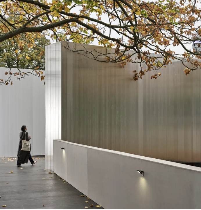 Le pavillon londonien repose sur une structure modulaire en aluminium recyclé à plus de 70 %, assemblée comme un jeu de construction et pensée pour être reconfigurée à chaque édition. Aucun élément n’est figé : les volumes, les circulations, les façades et les espaces d’accueil peuvent être recomposés selon les besoins, réduisant ainsi la production de déchets. Ce choix architectural dépasse la simple prouesse technique : il exprime une nouvelle philosophie du bâtir temporaire, où chaque matériau possède une seconde vie et chaque espace, une flexibilité assumée.
